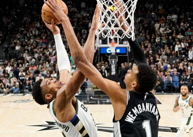 文班的籃下命中率76%——揚尼斯75%——三分射程平均遠到27尺4(庫里27尺2)。